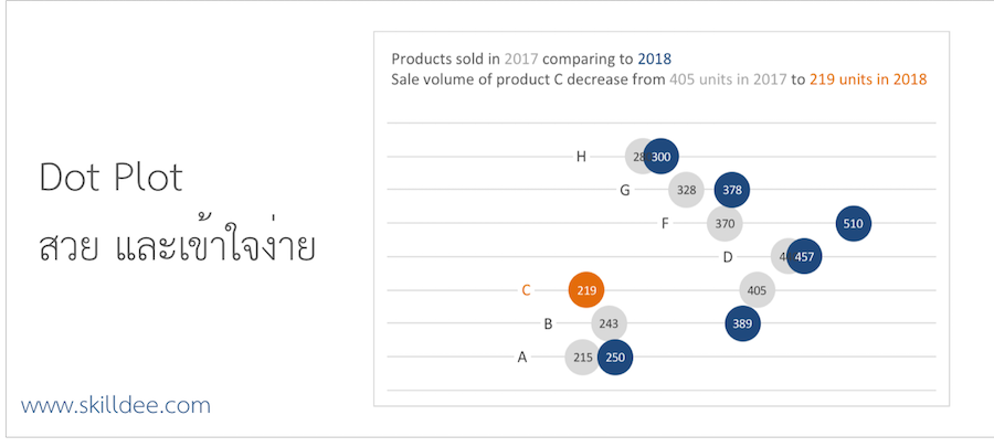 Dot Plot มีดีตรงที่เข้าใจได้ง่าย และสวยงาม ที่สำคัญทำได้ง่าย (กว่า Slope graph)